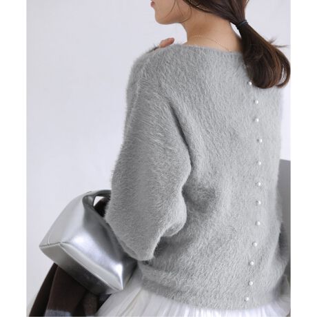 ふんわりとしたファーの素材感が女性らしさを引き立てる、バックパールデザインの長袖プルオーバー。