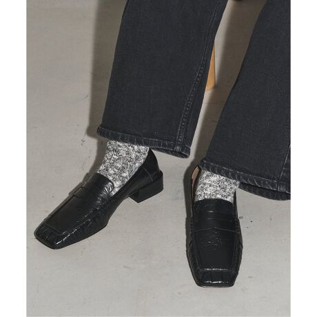 ワイドスクエアにギャザーディテールを組み合わせ、モードな中にも柔らかさを表現したローファー。