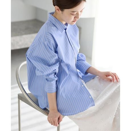 コットンならではの上品な表情はそのままに、ポリエステルをブレンドすることで、コットン100%に比べてシワになりにくく、日常使いしやすい素材感に仕上げています。