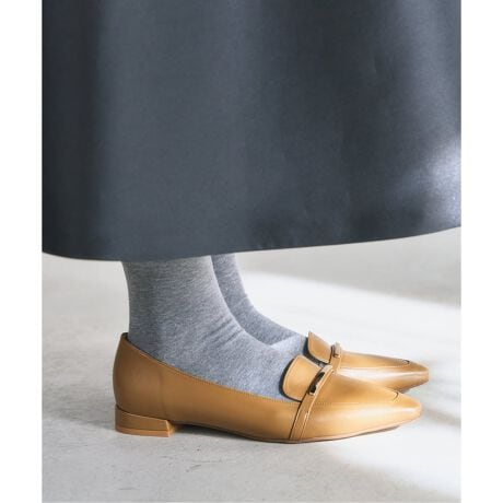 すっきりとしたフレンチスクエアトウと、細身のメタルパーツがポイントのローファー。