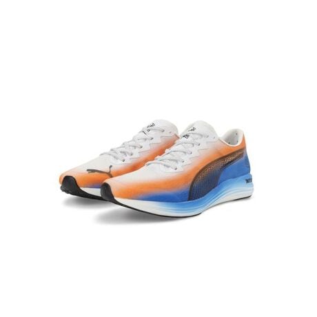 商品情報駅伝ランナーの「不安から自信へ」切り替えるスイッチを表現した EKIDEN PACK。その中でも最軽量モデル「プロピオ ニトロ」は、NITROシリーズの中で圧倒的な軽さを誇り、ミッドソール厚20mm設計で接地感を重視。筋力強化を目的としたトレーニングに最適な一足です。フルレングスNITRO FOAMTMが推進力をサポートし、通気性抜群のメッシュアッパーが足を軽快にキープ。さらに、あらゆる路面に対応するPUMAGRIPを搭載し、部活動や日々のランニングにおすすめの一足。特徴・NITROFOAMTM: 革新的な窒素注入フォーム・テクノロジーによる軽量性とクッション性・PWRPLATE:カーボンファイバー製プレートが、効率的なエネルギー伝達と推進力をサポート・PUMAGRIP:耐久性に優れたラバーが、さまざまな路面で安定したグリップを提供詳細・重量:約142g(27cm)・レギュラーフィット・シューレース仕様・陸上部などの部活やトレーニングに最適・プーマロゴ・耐久距離目安: 500km
