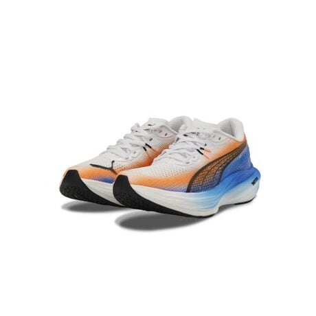 商品情報駅伝ランナーの「不安から自信へ」切り替えるスイッチを表現した EKIDEN PACK。その中でも「ウィメンズ ディヴィエイト ニトロ 3」は、PWRPLATEとNITROFOAMTMを搭載し、圧倒的な推進力と安定性を両立した万能モデルです。レースからペース走、ジョグまで幅広く対応し、ランナーの走りを次のレベルへ導きます。NITROFOAMTMは爆発的な速さを生み出す革新的フォームで、快適なクッション性を提供。さらに、PWRPLATEが着地の力を効率的に推進力へ変換し、エリート級の走行効率を実現します。アウトソールには耐久性とグリップ力に優れたPUMAGRIPを採用し、あらゆる路面で安定した走りをサポート。アッパーには通気性を考慮したエンジニアードメッシュを使用し、PWRTAPEで補強することでしっかりとしたフィット感を確保。さらに、フォームで補強されたロールカラー構造が快適さとホールド感を高めます。特徴・NITROFOAMTM:爆発的な速さを提供する革新的なテクノロジー。・PWRPLATE:パワフルな推進力とエリート級の効率性を実現・PUMAGRIP:PUMAGRIPアウトソールは耐久性のあるラバー製で、高いグリップ力を提供・エンジニアードメッシュアッパー:通気性を考慮して設計され、PWRTAPEで補強されたプレミアム素材が足へ快適なフィットを提供・ロールカラー:フォームで補強されたロールカラー構造により、快適さとフィット感を実現詳細・重量:約233g(24cm)・レギュラーフィット・エンジニアードメッシュアッパー・かかと-つま先の高低差(ドロップ):10mm・プロネーションタイプ:ニュートラル・シリアス/ファンランナー向け・普段のランニングからマラソンまで対応・耐久距離目安:800km