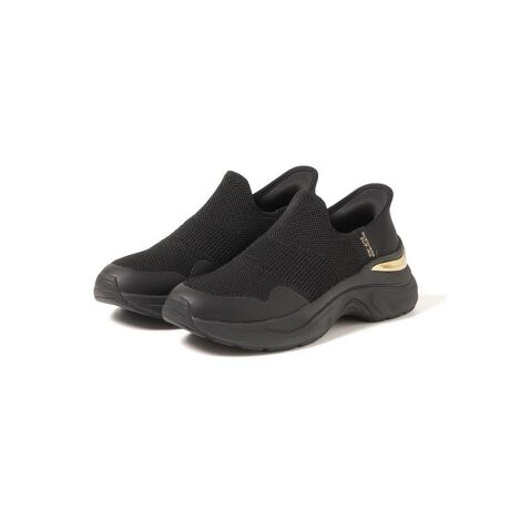 エンジニアードニットと合成素材のアッパーと、メタリックヒールクリップ、クッション性のあるSkechers Air-Cooled Memory FoamTM(スケッチャーズ エアクールドメモリーフォーム)インソールが特長です。