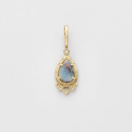 ニュアンスのあるオパールの神秘的な色合いが目を引くネックレスチャーム。ダイヤモンドを添えることで、オパールのしなやかな光彩と調和し、上質な表情を生み出します。深みのある静かな輝きを宿した、オパールの魅力を存分に楽しめるチャームです。※天然石や天然素材を使用しているものは、サイズ・色味・風合いの違いや、若干の傷、内包物の有無などに個体差があります。予めご了承ください。※オパールは大変柔らかく乾燥に弱い為、取り扱いにはご注意下さい。※オパールは爪留め(糊を併用)していますので水分にご注意下さい。