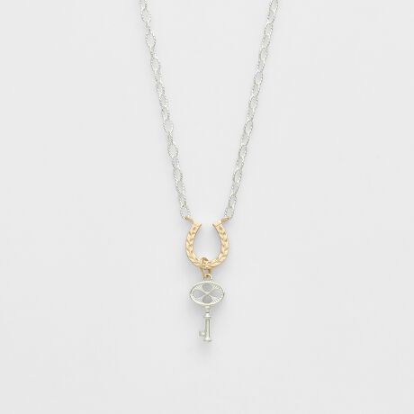 ageteのモチーフジュエリーは、自然の美しさや古くからの物語に着想を得てデザインされています。26年のシーズン限定では、モチーフの意味に改めて向き合い、“お守り”や“気持ちを高めるもの”として、好奇心や自分らしさを重ねられるネックレス&チャームセットに仕上げました。ネックレストップの馬蹄は“幸運を呼び込む”象徴で、月桂樹の彫刻を施し、リバーシブルで楽しめます。セットチャームの鍵は“未来や幸運の扉を開く”意味を持ち、新しい始まりにぴったりです。モチーフの意味は一般的なものにとどまらず、あなた自身の想いを込めて、自分だけのネックレスを身に着けるひとときをお楽しみください。※天然石や天然素材を使用しているものは、サイズ・色味・風合いの違いや、若干の傷、内包物の有無などに個体差があります。予めご了承ください。※スペシャルボックス付きとなります。(数量限定)
