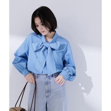 デニム見えする素材にボウタイリボンをあしらった、女性らしさが引き立つブラウス。一枚着はもちろん、ニットとレイヤードしたり、ジャケット合わせでもリボンタイが映えるのでおすすめ。カジュアルなデニム見えする素材ながら上品に着こなせます。<素材>デニム見えのシャンブレー素材を使用しています。<詳細>仕様・前ボタン裏地・なし透け感・なし / 光沢・なし / 伸縮性・なし 生地の厚さ・普通※モデルの着用画像の場合、光の当たり具合により、実際の色味と異なって見えることがございます。色味は、商品単体の画像をご参照ください。