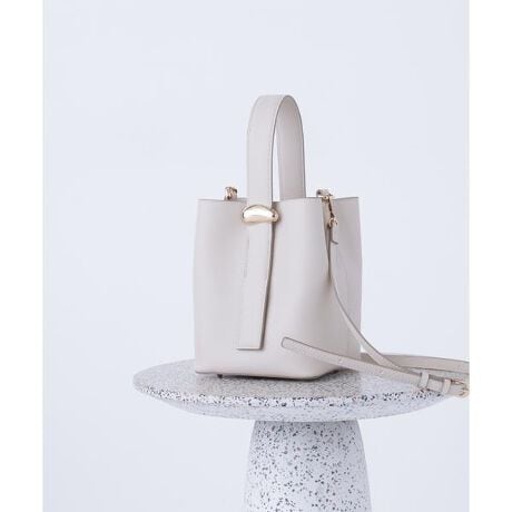 ハンドル部分にデザイン性のあるメタルオーナメントをあしらったワンハンドルのバケットバッグ。コーディネートのアクセントになること間違いなしです。ショルダーストラップ付きなので、クロスボディにするとハンズフリーで持ち運べます。<素材>しっとりさらっとした質感のフェイクレザーを使用。汚れが付きずらいのも嬉しいポイントです。※モデルの着用画像の場合、光の当たり具合により、実際の色味と異なって見えることがございます。色味は、商品単体の画像をご参照ください。