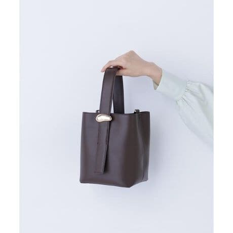 ハンドル部分にデザイン性のあるメタルオーナメントをあしらったワンハンドルのバケットバッグ。コーディネートのアクセントになること間違いなしです。ショルダーストラップ付きなので、クロスボディにするとハンズフリーで持ち運べます。<素材>しっとりさらっとした質感のフェイクレザーを使用。汚れが付きずらいのも嬉しいポイントです。※モデルの着用画像の場合、光の当たり具合により、実際の色味と異なって見えることがございます。色味は、商品単体の画像をご参照ください。
