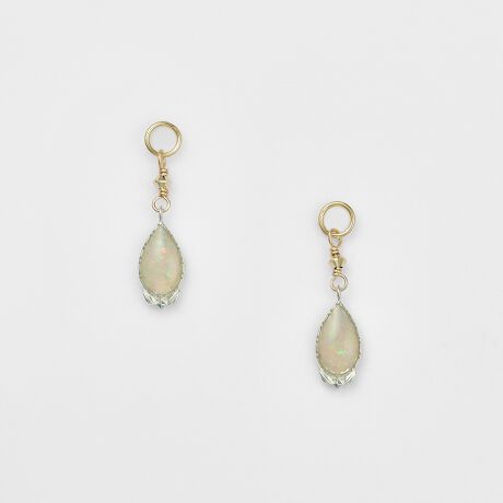 春の野原で咲く、可憐な白い花をイメージしたピアスチャーム。乳白色のオパールを繊細なモザイク状に封じ込める特別な技法で、オパールならではの柔らかな揺らぎと輝きが一層際立ちます。シンプルで合わせやすいデザインは、日常使いはもちろん、大切な方への贈り物にもおすすめです。※天然石や天然素材を使用しているものは、サイズ・色味・風合いの違いや、若干の傷、内包物の有無などに個体差があります。予めご了承ください。※モザイクの石の入り方や個数は個体差があります。※樹脂(エポ)を使用しているため、高温になる場所で保管は変色につながる可能性がありますので、お避け下さい。