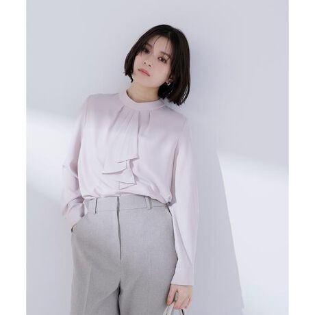 NBB定番人気!華やかなッフルボウタイブラウス。首元はほどよく詰まり、きちんと感を演出してくれます。ラッフル部分は固定されているので、結ぶ手間なく着るだけで決まるデザイン。ジャケットインにも映えるラッフルボウタイが顔まわりを華やかに演出。セットインスリーブや身頃はコンパクトなサイズ感でジャケットインしやすく、オフィスシーンに活躍してくれます。<素材>柔らかいフルダルジョーゼットの合繊素材を使用。オフカラーでも透けにくい素材感です。<詳細>仕様・後ろボタン裏地・なし透け感・なし / 光沢・なし / 伸縮性・ややあり生地の厚さ・普通※モデルの着用画像の場合、光の当たり具合により、実際の色味と異なって見えることがございます。色味は、商品単体の画像をご参照ください。