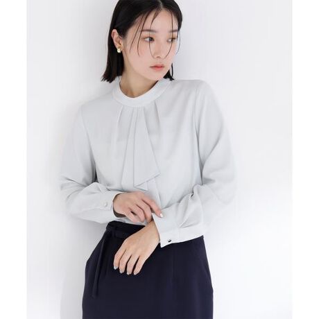 NBB定番人気!華やかなッフルボウタイブラウス。首元はほどよく詰まり、きちんと感を演出してくれます。ラッフル部分は固定されているので、結ぶ手間なく着るだけで決まるデザイン。ジャケットインにも映えるラッフルボウタイが顔まわりを華やかに演出。セットインスリーブや身頃はコンパクトなサイズ感でジャケットインしやすく、オフィスシーンに活躍してくれます。<素材>柔らかいフルダルジョーゼットの合繊素材を使用。オフカラーでも透けにくい素材感です。<詳細>仕様・後ろボタン裏地・なし透け感・なし / 光沢・なし / 伸縮性・ややあり生地の厚さ・普通※モデルの着用画像の場合、光の当たり具合により、実際の色味と異なって見えることがございます。色味は、商品単体の画像をご参照ください。
