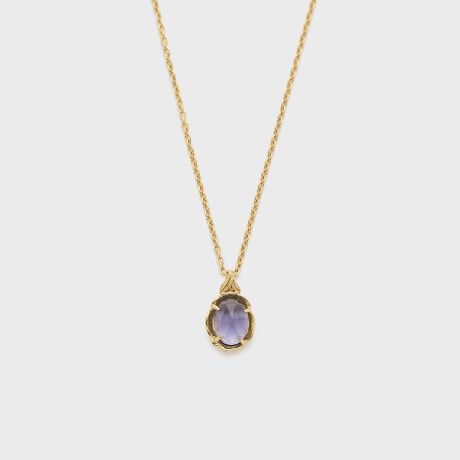 私だけが知っている、秘密の庭。目をとじると心の奥に浮かぶ、花も風も空もふわりと混ざり合う、懐かしく心地よい景色。可憐なアネモネの花が開く瞬間を描いたネックレス。蕾が開く神秘的な瞬間を、ローズカットを施したアイオライトの輝きに閉じ込めました。花びらを象った石座には、内側にも外側にも繊細な彫り模様を施し、やさしい印象に仕上げています。シンプルな1石デザインのようなモチーフ使いは、程よい存在感で日常にもなじみます。※天然石や天然素材を使用しているものは、サイズ・色味・風合いの違いや、若干の傷、内包物の有無などに個体差があります。予めご了承ください。