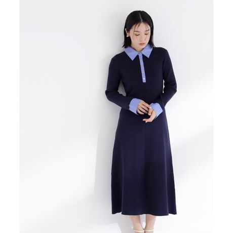 シャツを重ね着しているような上品なレイヤード見えを一枚で叶えるニットワンピース。すっきりとしたシルエットに、襟と袖カフスを布帛の別布で切り替えたデザインです。フロントにあしらった金色ボタンが、クラシカルで華やかなアクセント。伸縮性のあるリブ素材で着心地が良く、体のラインをきれいに見せてくれるのも嬉しいポイントです。<素材>ストレッチ性のあるリブ編みニットです。<詳細>仕様・前ボタン裏地・なし透け感・なし / 光沢・なし / 伸縮性・あり生地の厚さ・普通※モデルの着用画像の場合、光の当たり具合により、実際の色味と異なって見えることがございます。色味は、商品単体の画像をご参照ください。