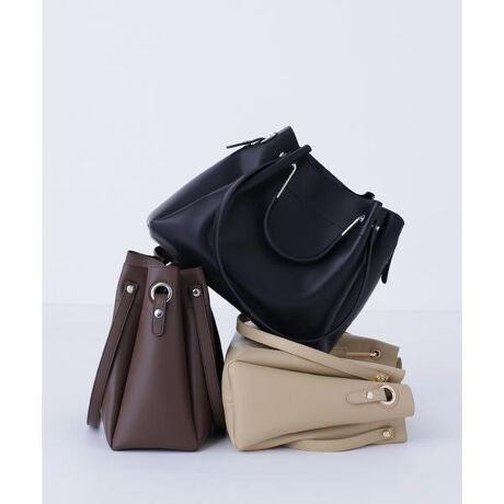 柔らかくタックが入ったボディに、きらりと光るメタルハンドルがポイントの2wayハンドルショルダーバッグは、A4ファイルが収納できるサイズ感とユースフルなショルダー使いが人気のデザイン。しっかりとしたマチがあり収納力も抜群のため、荷物の増える通勤などにおすすめです。インナーのファスナー付きポーチはサイドのホックで取り外すことも可能です。<素材>しっとりさらっとした質感のフェイクレザーを使用。汚れが付きずらいのも嬉しいポイントです。※モデルの着用画像の場合、光の当たり具合により、実際の色味と異なって見えることがございます。色味は、商品単体の画像をご参照ください。