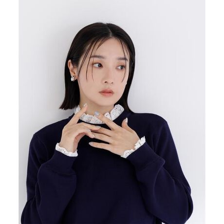 襟ぐりと袖口にレース素材のフリルをドッキングしたニットプルオーバー。1枚着るだけで様になり、レースブラウスをレイヤードしているようなデザインがポイントです。フェミニンな印象のレースデザインが華やかさをプラス。身頃はすっきりとした総針編みにしており、普段着からオフィスシーンまで幅広く着回せます。<素材>身頃のニットはキレイな目面の糸を使用し、総針編みですっきりと編み立てています。襟ぐりと袖口はレース素材をドッキングしています。<詳細>仕様・後ろボタン裏地・なし透け感・なし / 光沢・なし / 伸縮性・あり 生地の厚さ・普通※モデルの着用画像の場合、光の当たり具合により、実際の色味と異なって見えることがございます。色味は、商品単体の画像をご参照ください。