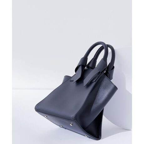 マチが張り出したトラペーズ型のボディにハンドルリボン、シーズン毎に取り入れやすい配色がポイントの定番人気トートバッグ。幅広マチで、通勤など荷物が多めの時にも丁度良い容量感です。マチを内側に折り込んでナスカンで留めれば、細長くシャープなシルエットに。長さ調節可能なショルダーストラップもついて実用性もあります。内装についた2つのオープンポケットも嬉しいポイント。ハンドルのリボンをスタッズ留めして緩まないように仕上げています。<素材>黒とオフベースカラーはつるっとした表革風のフェイクレザーを使用。ベースベースカラーの本体にはスウェードタッチのフェイクレザー/ハンドルには表側風のフェイクレザーを使用しています。※モデルの着用画像の場合、光の当たり具合により、実際の色味と異なって見えることがございます。色味は、商品単体の画像をご参照ください。
