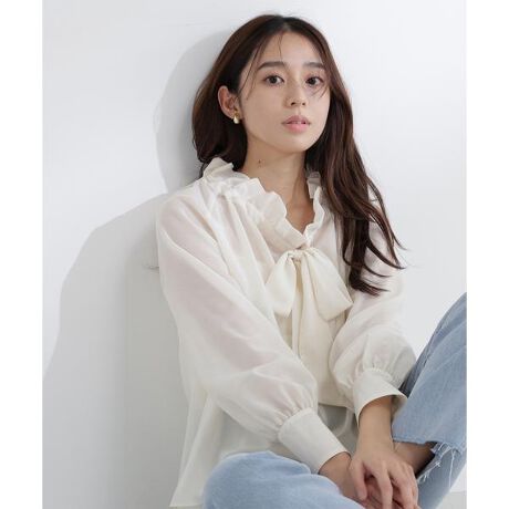 前後2wayで着られるシアー素材のボウタイブラウス。ボウタイを前にすると華やかに、後ろにするとすっきりとした印象で着ていただけます。ほどよい透け感のある素材が軽やかで、女性らしい抜け感もプラス。キレイめにもカジュアルにも着回せるデザインです。<素材>軽やかで繊細なシアー素材を使用。上品な透け感のある素材感です。<詳細>仕様・開閉なし裏地・なし透け感・あり / 光沢・なし / 伸縮性・なし生地の厚さ・薄手※モデルの着用画像の場合、光の当たり具合により、実際の色味と異なって見えることがございます。色味は、商品単体の画像をご参照ください。