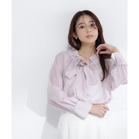 前後2wayで着られるシアー素材のボウタイブラウス。ボウタイを前にすると華やかに、後ろにするとすっきりとした印象で着ていただけます。ほどよい透け感のある素材が軽やかで、女性らしい抜け感もプラス。キレイめにもカジュアルにも着回せるデザインです。<素材>軽やかで繊細なシアー素材を使用。上品な透け感のある素材感です。<詳細>仕様・開閉なし裏地・なし透け感・あり / 光沢・なし / 伸縮性・なし生地の厚さ・薄手※モデルの着用画像の場合、光の当たり具合により、実際の色味と異なって見えることがございます。色味は、商品単体の画像をご参照ください。