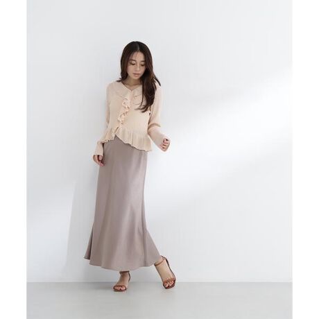ほどよい光沢のあるサテン素材をバイアス取りにし、体に沿うようなしなやかなラインを表現したナロースカート。動きに合わせて揺れる、落ち感のあるシルエットが女性らしい印象に見せてくれます。ウエストまわりはすっきり見える設計で、トップスインもアウトもバランス良く決まるデザインです。<素材>肉厚で上品なサテン素材を使用しています。<詳細>仕様・左ファスナー裏地・あり透け感・なし / 光沢・あり / 伸縮性・なし 生地の厚さ・普通※モデルの着用画像の場合、光の当たり具合により、実際の色味と異なって見えることがございます。色味は、商品単体の画像をご参照ください。