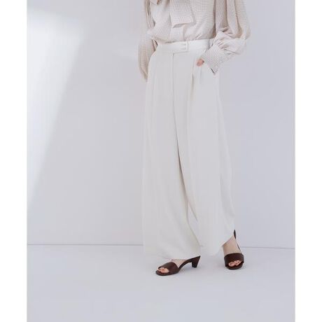 ベルトの華奢なメタルボタンがアクセントになったベーシックなワイドパンツ。しなやかな生地感が上品な印象なのでオフィスシーンにも活躍してくれます。骨格ウェーブさんにおすすめの柔らかく落ち感のあるシルエット。程よいワイド感で動きやすく、キレイめコーデに合わせやすいデザインです。<素材>しなやかで上品な素材を使用しています。<詳細>仕様・前ファスナー裏地・あり透け感・なし / 光沢・なし / 伸縮性・なし 生地の厚さ・普通※モデルの着用画像の場合、光の当たり具合により、実際の色味と異なって見えることがございます。色味は、商品単体の画像をご参照ください。