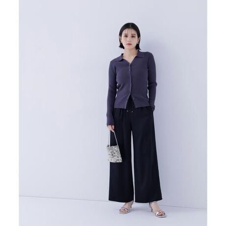 はき心地がラクで着回し力抜群なサテンイージーパンツ。軽やかで落ち感のあるサテン素材を使用、ウエストはゴム仕様でストレスフリーな着心地です。ウエストゴムでも腰まわりがもたつかず、すっきりと着ていただけます。共地リボンの先に付けたワニカンがきらっとポイントに。オーバーニットと合わせた、カジュアルスタイルにもおすすめです。<素材>軽さと程よい落ち感のある合繊サテン素材を使用。オフホワイトカラーのみ裏地つきです。<詳細>仕様・開閉なし裏地・オフカラーはあり透け感・なし / 光沢・なし / 伸縮性・なし生地の厚さ・普通※モデルの着用画像の場合、光の当たり具合により、実際の色味と異なって見えることがございます。色味は、商品単体の画像をご参照ください。