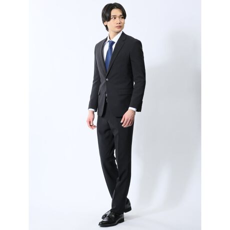 ストレッチウォッシャブル スリムフィット 2ボタン2ピース リクルートスーツ 黒無地
