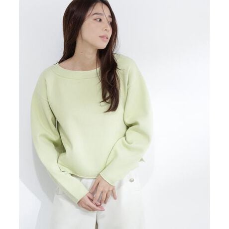 スウェット風の編地がポイントのニットプルオーバー。すっきりとしたボートネックに、構築的なフォルムスリーブがキレイめな印象のデザインです。サイドスリットを入れたショート丈は抜け感があり、どんなボトムスとも好相性。スウェットよりもキレイ見えするので幅広いシーンで着回せます。<素材>表と裏の糸を変えて、むぎゅっとしたスウェットライクなタッチを表現した、ジャガード編みです。フォルムスリーブのシルエットがキレイに出る素材感です。<詳細>仕様・開閉なし裏地・なし透け感・なし / 光沢・なし / 伸縮性・あり生地の厚さ・普通※モデルの着用画像の場合、光の当たり具合により、実際の色味と異なって見えることがございます。色味は、商品単体の画像をご参照ください。