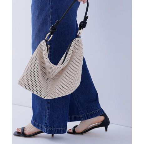 編み目が涼しげなスポーツメッシュ調のボディにノットデザインがポイントのセミショルダーバッグ。ショルダー根元のカラナビリングに、お気に入りのチャームを装着できる便利なデザインです。インナーにはリップや鍵など細々したものを収納できるハンドルと同じ素材のポーチ付きも嬉しいポイント。また、片方のリングにもう片方のリングを通すことで、フォーチューンクッキー風の巾着型バッグにも変形します。<素材>編み目が涼しげなスポーツメッシュ調のポリエステル素材をボディに使用。ハンドルにはしっとり柔らかなスムース調フェイクレザーを使用。※モデルの着用画像の場合、光の当たり具合により、実際の色味と異なって見えることがございます。色味は、商品単体の画像をご参照ください。