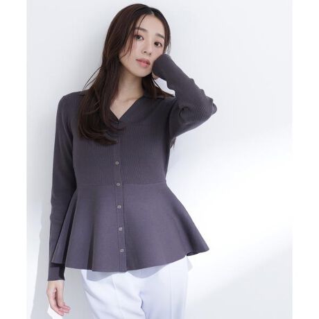 すっきりとしたスキッパーデザインのペプラムニット。ゴールドカラーで縁取りしたきらっと釦が上品なアクセントになっています。ボディはリブ編みですっきりと、裾に向かってフレアに広がるメリハリシルエットを演出。細身パンツやナロースカートと合わせやすく、普段着からオフィスシーンまで着回せます。<素材>柔らかいタッチのキレイな目面の糸を使用しています。<詳細>仕様・開閉なし裏地・なし透け感・なし / 光沢・なし / 伸縮性・あり生地の厚さ・普通※モデルの着用画像の場合、光の当たり具合により、実際の色味と異なって見えることがございます。色味は、商品単体の画像をご参照ください。