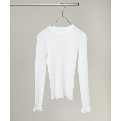 ・フリル袖が華やぎを添える、ほんのりシアーなリブニット