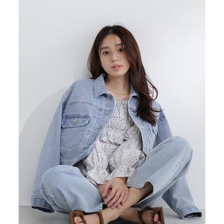程よいオーバーサイズのシルエットとショート丈がポイントのデニムジャケット。フェミニンなワンピースやスカートとも合わせやすいショート丈です。少し襟を抜いた抜け感のある着こなしもおすすめ。お持ちのアイテムにプラスするだけで、カジュアルスタイルが決まる一着です。<素材>程よく肉感のあるデニム素材を使用しています。<詳細>仕様・前ボタン裏地・なし透け感・なし / 光沢・なし / 伸縮性・なし 生地の厚さ・普通デニム製品は摩擦により色移りする可能性がございます。白や淡色系衣料品や雑貨などご着用の際は十分にご注意ください。※モデルの着用画像の場合、光の当たり具合により、実際の色味と異なって見えることがございます。色味は、商品単体の画像をご参照ください。