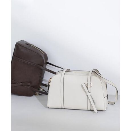 ハンドルにあしらったアシンメトリーなリボンが、絶妙な抜け感を出してくれるボストンバッグ。細長いショルダーストラップがすっきりとした印象です。ヴィンテージライクな素材感と程よいサイズ感もあいまって、通勤にも休日のお出かけにも合うデザインです。ショルダーに通したメタルリングは、トレンドのバッグチャームを装着するのに便利なディテールです。<素材>ヴィンテージレザーライクな表面感とムラ感で、表情に深みのあるフェイクレザーを使用。汚れがつきづらくお手入れが簡単です。※モデルの着用画像の場合、光の当たり具合により、実際の色味と異なって見えることがございます。色味は、商品単体の画像をご参照ください。