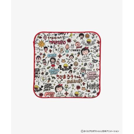 個性豊かで賑やかなちびまる子ちゃんのキャラクターたちをguernikaらしいテイストで描き下ろした総柄プリントのハンドタオル。