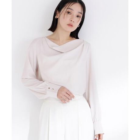 トレンドのドレープネックデザインがデコルテを美しく、顔まわりを華やかに見せてくれるブラウス。袖口に入れたギャザーがフェミニンで上品な印象を演出します。カフスに付けたライトゴールドカラーの釦がキラッとポイントに。フォーマルやオケージョンシーンのコーディネートにも活躍してくれます。<素材>キレイな落ち感のあるフルダルツイル素材を使用。オフカラーでも透けにくい素材感です。<詳細>仕様・開閉なし裏地・なし透け感・なし / 光沢・なし / 伸縮性・ややあり生地の厚さ・普通※モデルの着用画像の場合、光の当たり具合により、実際の色味と異なって見えることがございます。色味は、商品単体の画像をご参照ください。