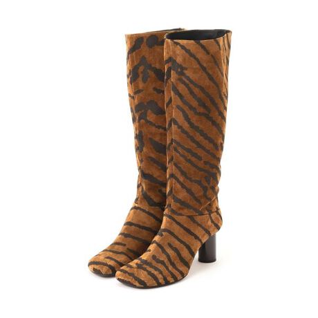 スウェードにゼブラ柄をプリントしたロングブーツもタイトすぎずワイドすぎない筒の太さが絶妙で1足投入でスタイリングが一気に今年風に仕上がります。