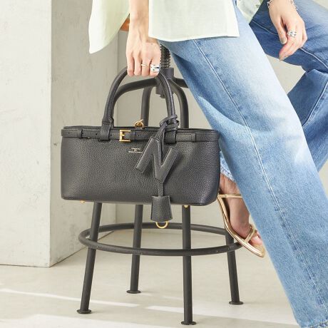 開口部に配したベルトがアクセントになった大人バッグ