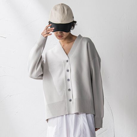 薄手のカットソーやブラウスの羽織りとして、一枚でVネックトップスとして、寒暖差のある時期や、春のつなぎに使えるアイテム。