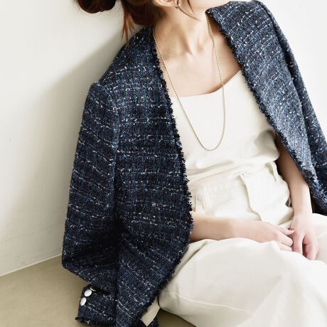 ネイビーを基調とした、オンオフ問わず活躍するツイードジャケット。