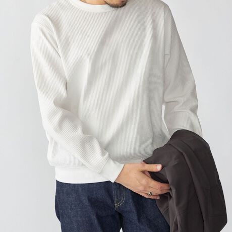 ややリラックス感のあるワッフル生地のクルーネックTシャツ。