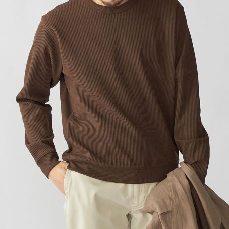 ややリラックス感のあるワッフル生地のクルーネックTシャツ。