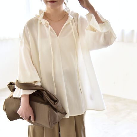 フリル襟で顔周りが華やぐ、着映えブラウス。