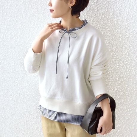 すっきり着こなせるレイヤード風デザインのプルオーバー