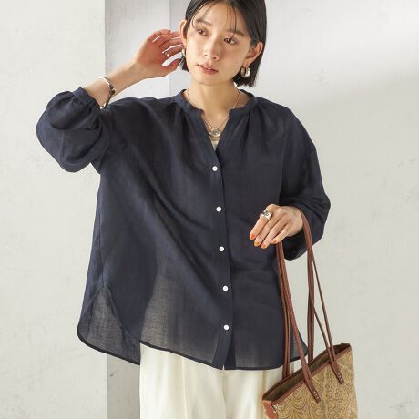 ヨーロピアンリネン原料を使用した、女性らしく着られるスキッパーシャツ。
