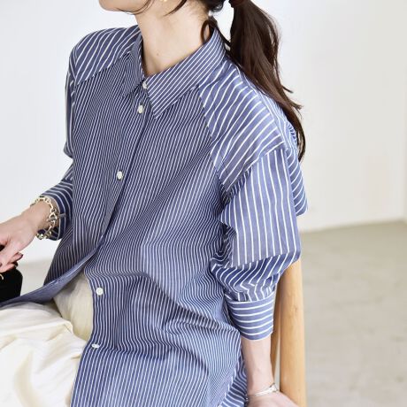 ミニマルさもありながらシンプルすぎず、一枚で着映えするシャツです。