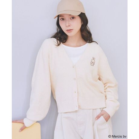 Vネックラインですっきりした印象を作りながら、ふんわりとしたもこもこ素材がやさしく包み込むカーディガンです。柔らかな肌触りで着心地が良く、長時間の外出やおうち時間でも快適に過ごせます。ミッフィーやボリスのワンポイント刺繍がさりげないアクセントになり、シンプルな着こなしを程よく可愛らしく見せます。やや短めの着丈と緩やかな袖のボリュームでボトムスとのバランスが取りやすく、デニムやスカートに合わせてカジュアルに着回せます。季節の変わり目の羽織りとしても便利で、普段使いからおでかけまで幅広く活躍します。