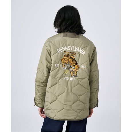 スーベニアをモチーフに大胆な刺繍デザインがアクセントなキルティングライナー