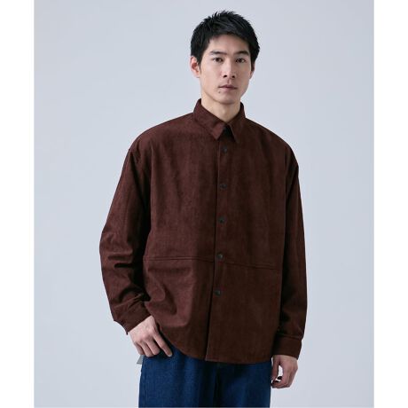 シャツ感覚で軽く羽織れるミニマルなデザインながら、フェイクスエードの素材感がスタイリングにモードな印象をプラスします。