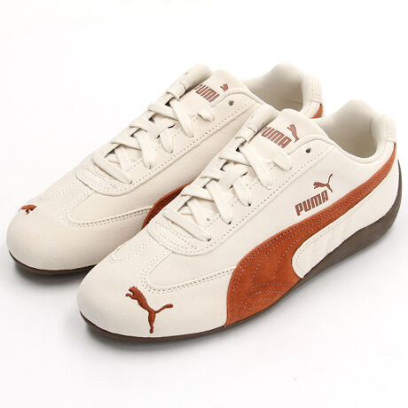 スピードキャットは、1999年に誕生し、80年代から90年代にかけてF1グランプリのドライバーが履いていた耐火レーシングシューズをベースにしたライフスタイルシューズです。レーシングにインスパイアされたなめらかなラインと空気力学に基づいたデザインにより、ファッションやスニーカーカルチャーに衝撃を与えてきました。今回、再びリリースされるスピードキャットOGは、F1レーシングチームを彷彿とさせる豊富なカラー展開とスウェード素材をふんだんに使用した仕上がりとなっています。2000年代初頭のレーシングウェアに敬意を表し、つま先には“プーマキャット”の刺繍が施され、シュータンとフォームストリップの上にはゴールドのロゴがあしらわれています。