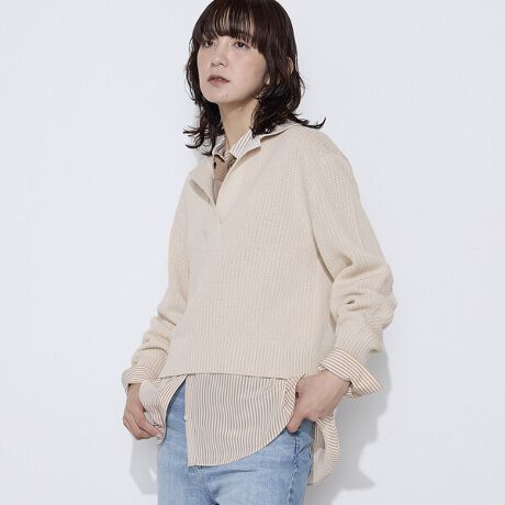 スキッパーとポロ襟を組み合わせた、トレンド感のあるニットプルオーバーです。