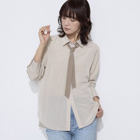コムサ定番の、ボウタイ付きストライプシャツです。